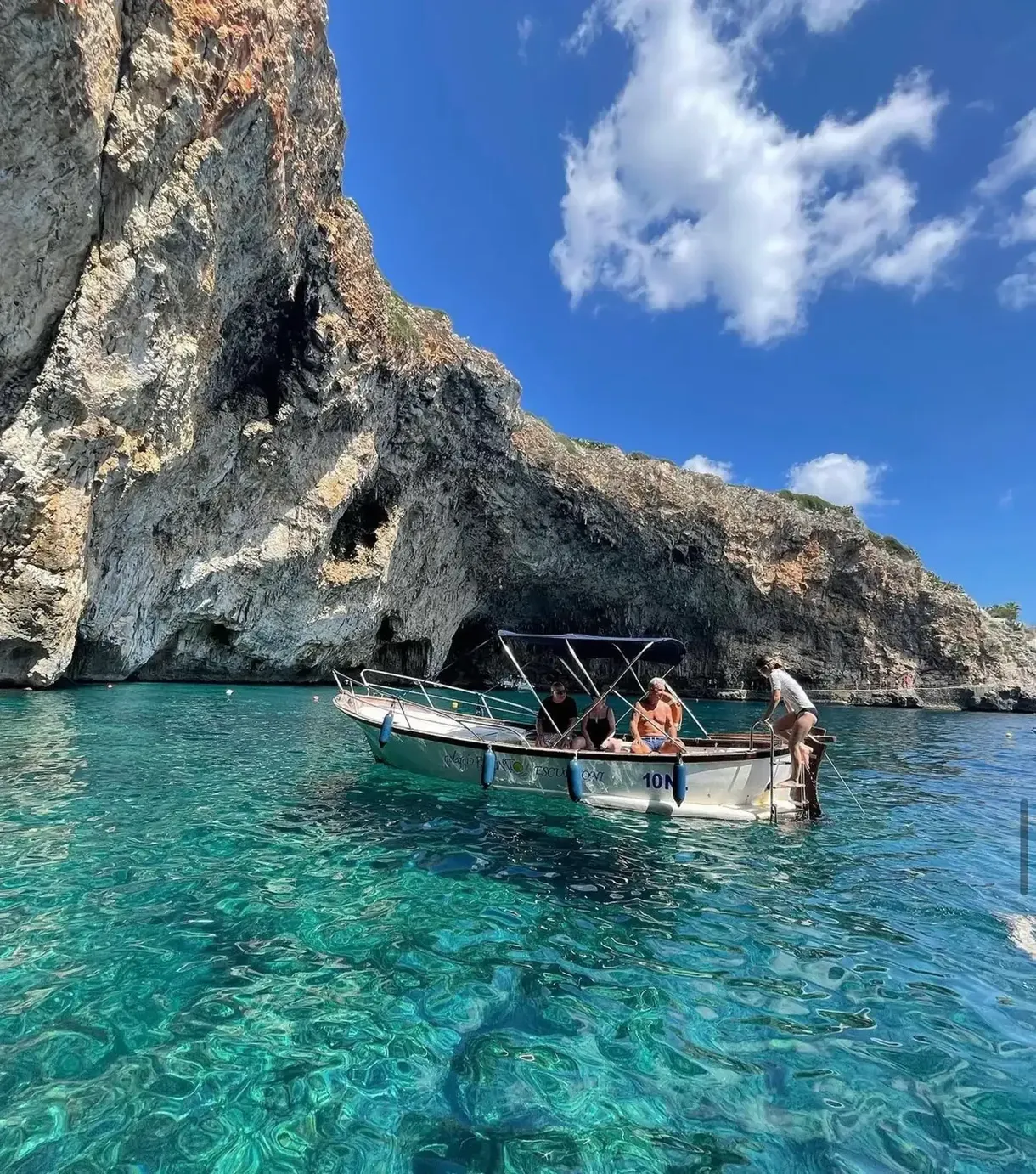 Durante le due ore di navigazione, esplorerai le acque cristalline di Porto Miggiano e la splendida Baia di Castro al tramonto.