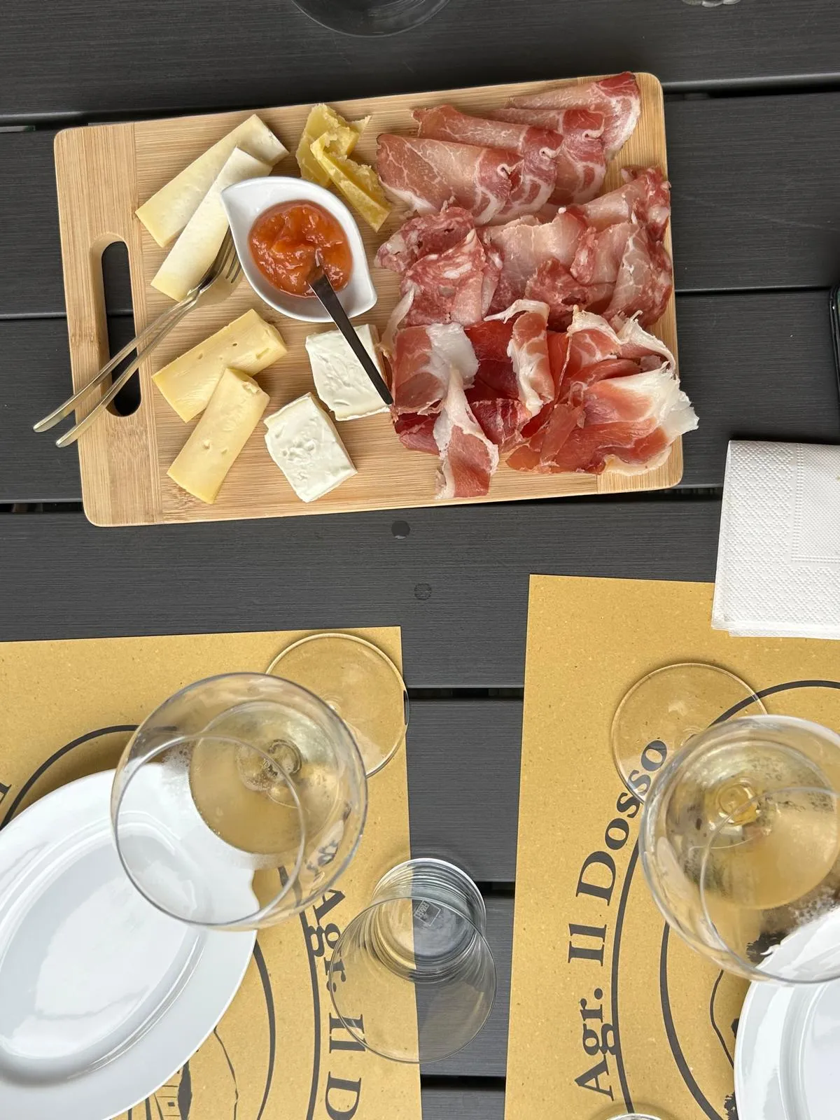 La degustazione è accompagnata da un tagliere misto di salumi e formaggi locali.