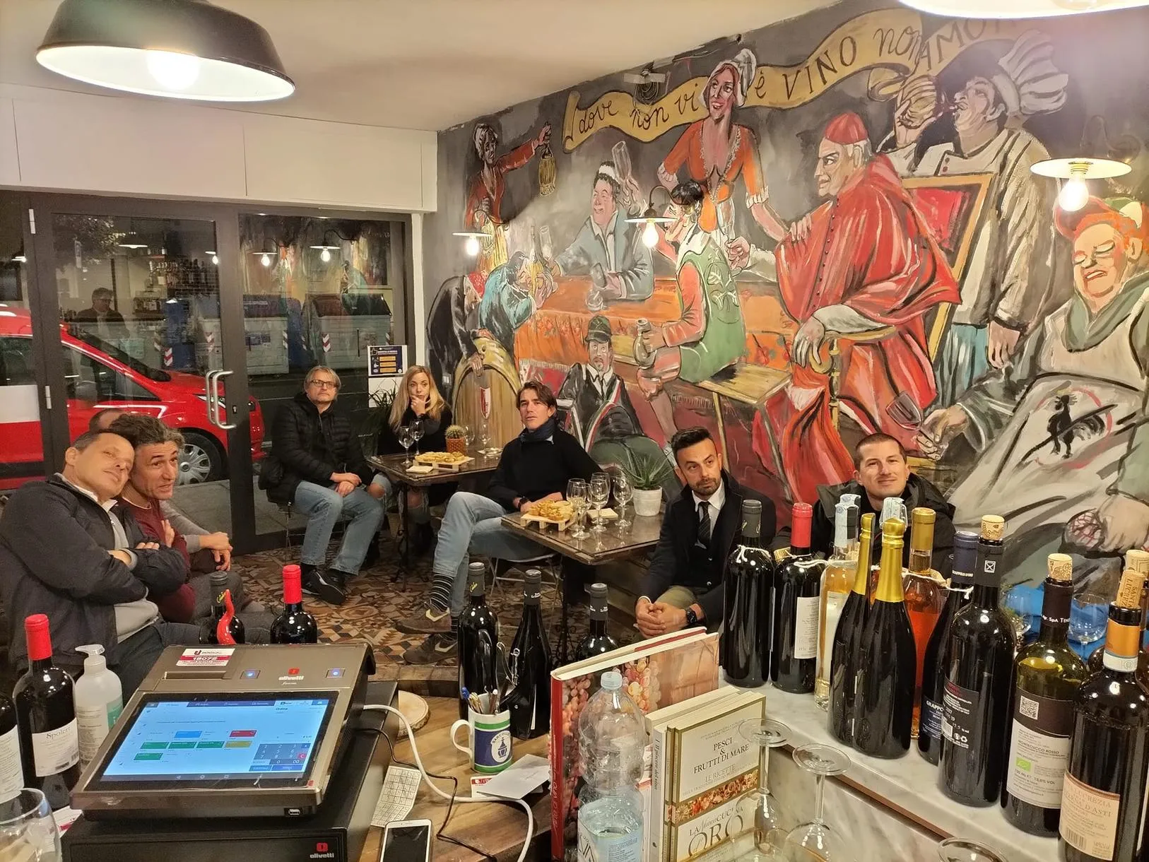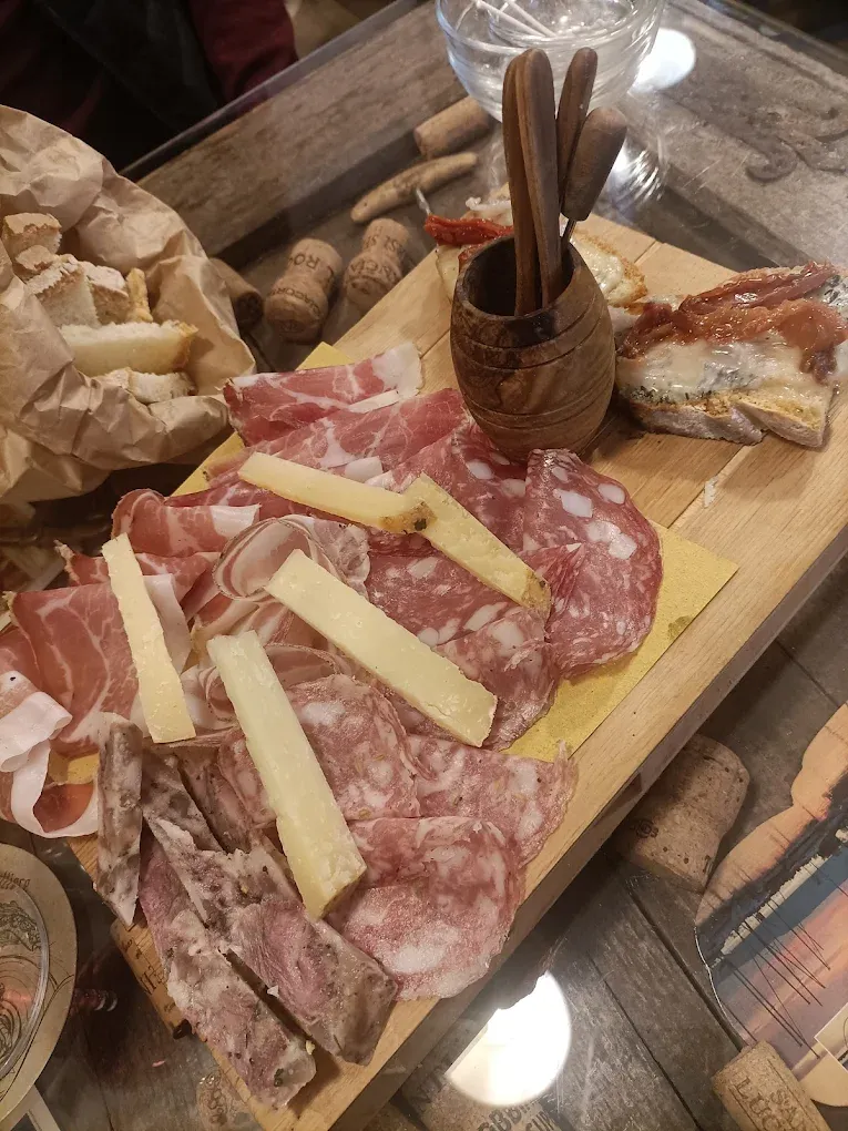 Degustazione di vini accompagnata da prodotti locali in un'enoteca a Firenze.