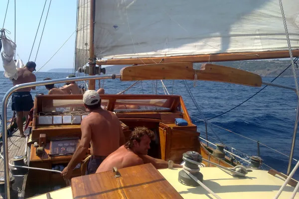Vivi una giornata in barca a vela da Castro a bordo di un ketch d’epoca di 15 metri del 1957, lungo la costa salentina con pranzo e aperitivo a bordo.