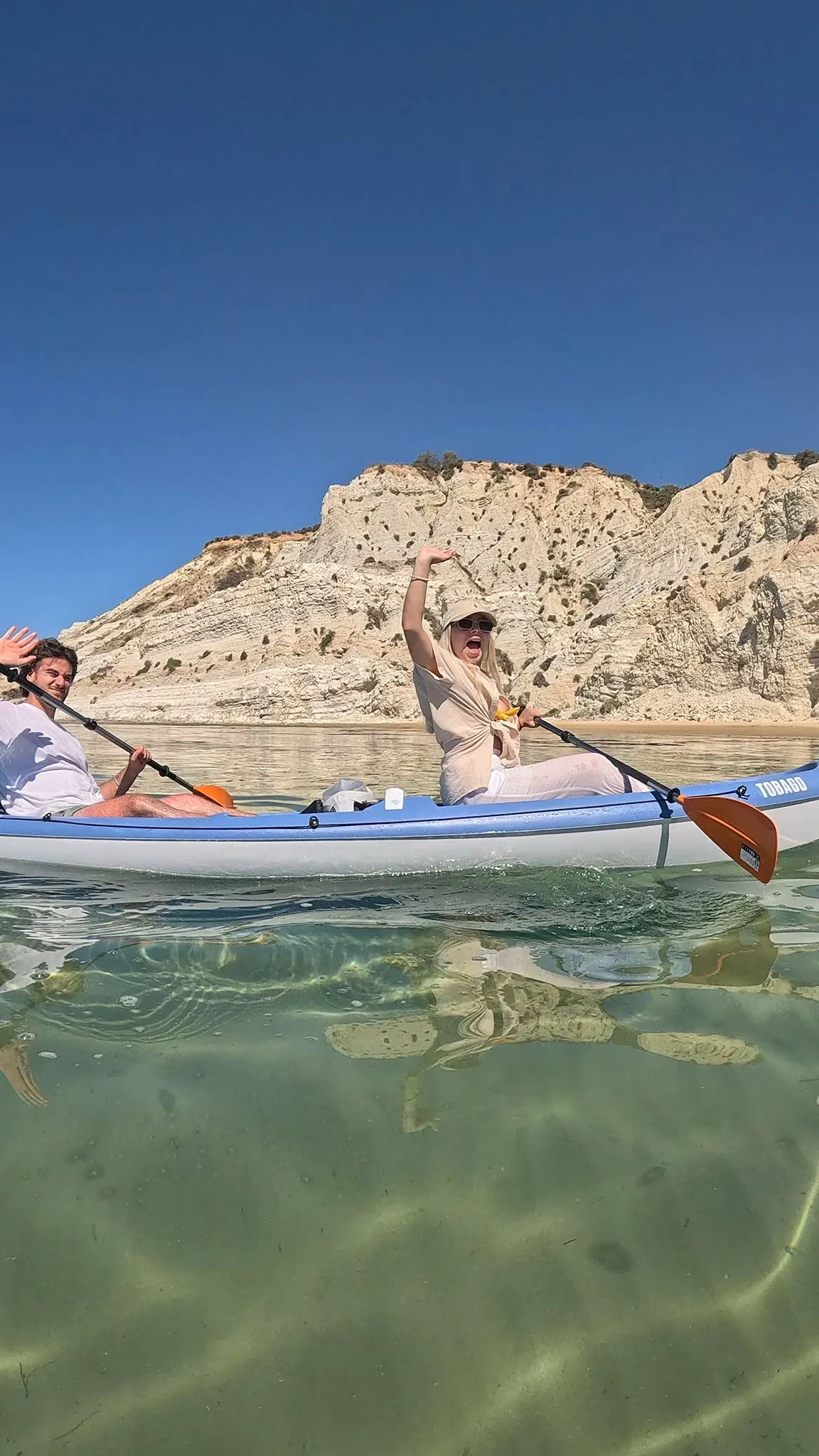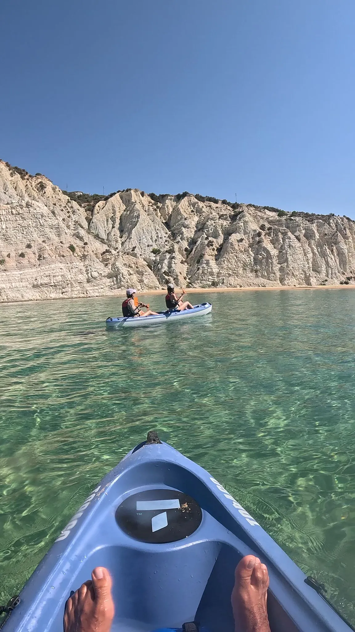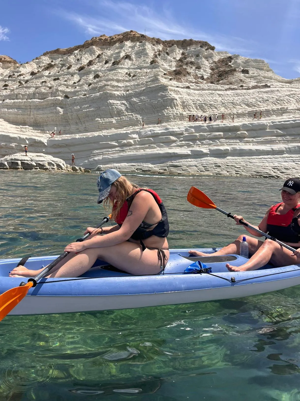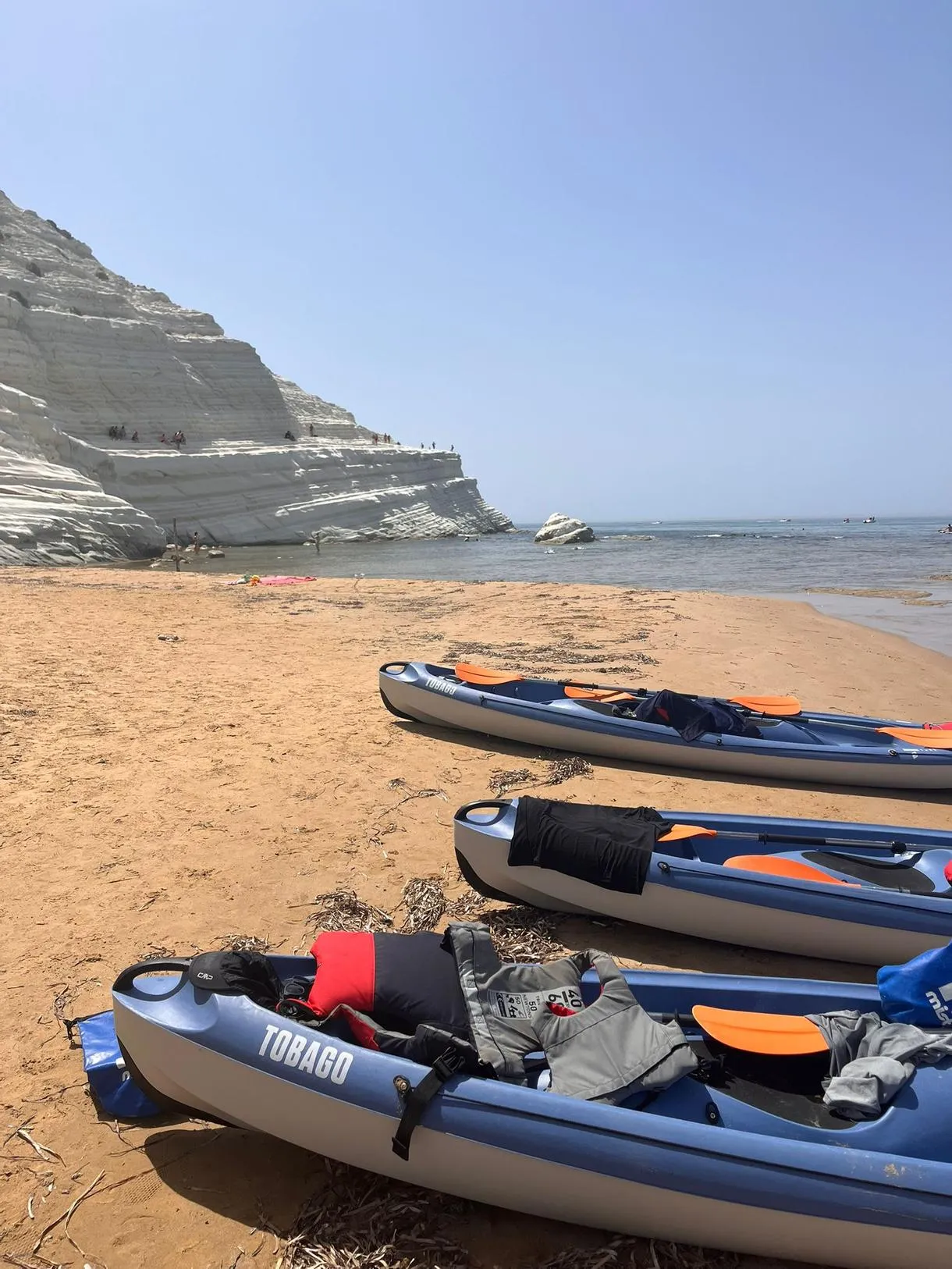 Parti per un’avventura unica in Kayak alla Scala dei Turchi, esplorando la costa bianca in kayak biposto o triposto.