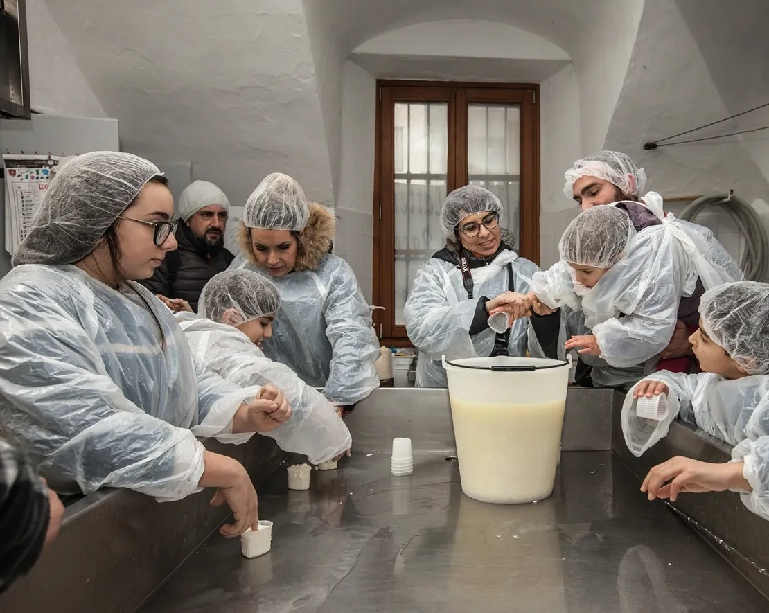 Assisterete alla preparazione della cagliata, scoprendo i segreti della trasformazione del latte, e visiterete la storica Latteria Turnaria, con i suoi ambienti restaurati e gli antichi strumenti di lavorazione.