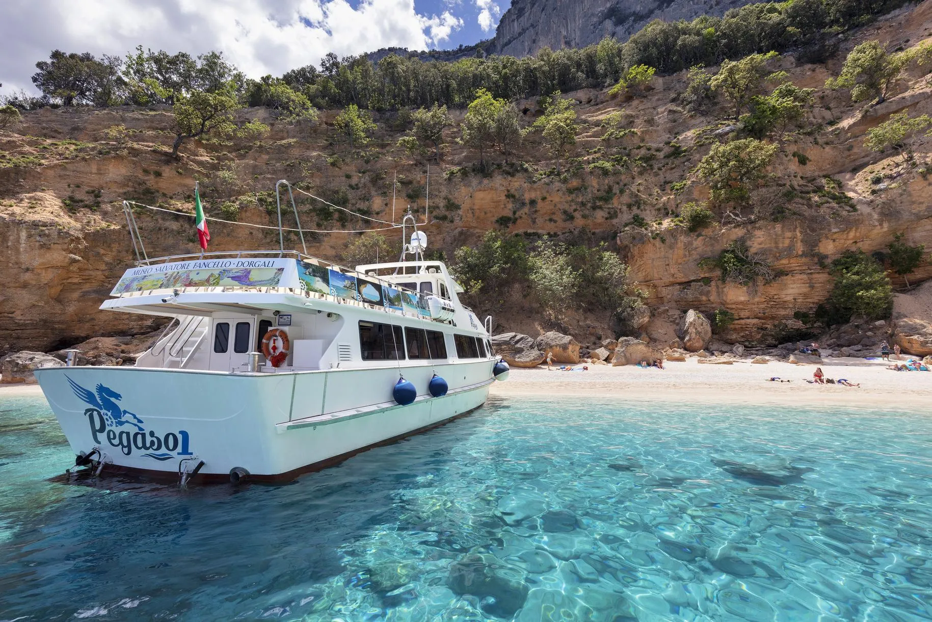La partenza è prevista alle 7:30 e l’itinerario include Cala Mariolu come prima tappa, per godere della spiaggia in un momento più tranquillo e autentico, seguita da Cala Biriola, Cala Sisine e Cala Luna, con soste per nuotare e rilassarsi. Durante la navigazione sono previste anche brevi soste fotografiche a Cala Goloritzé e alle Piscine di Venere.
