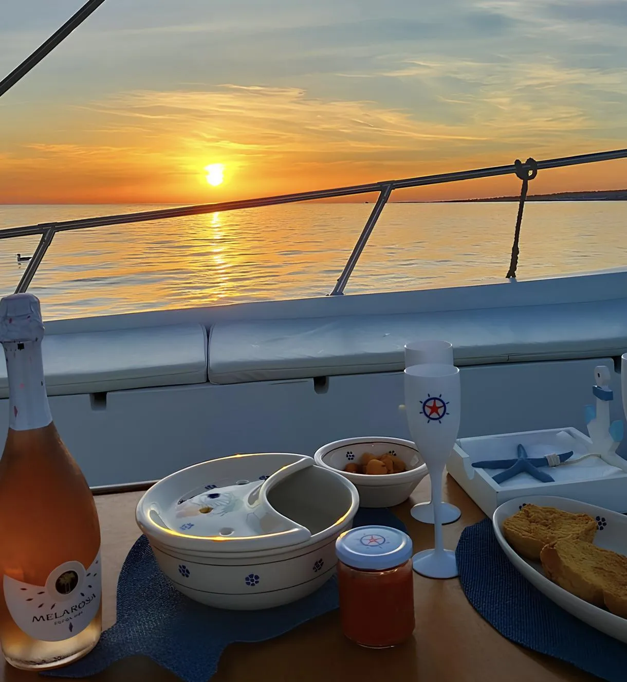 Escursione in barca con aperitivo al tramonto da Santa Maria di Leuca, tra panorami mozzafiato e il mare che si colora di sfumature suggestive.