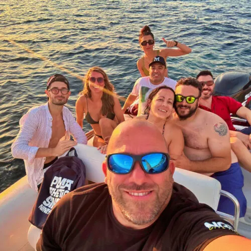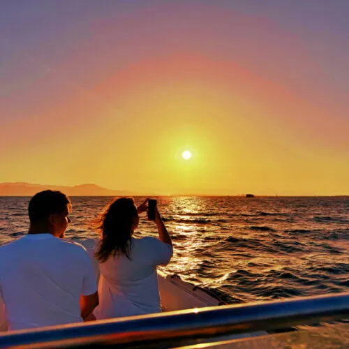 Partenza dal porto di Cagliari per un’escursione in gommone di 3 ore al tramonto nel Golfo degli Angeli, con aperitivo a bordo.
