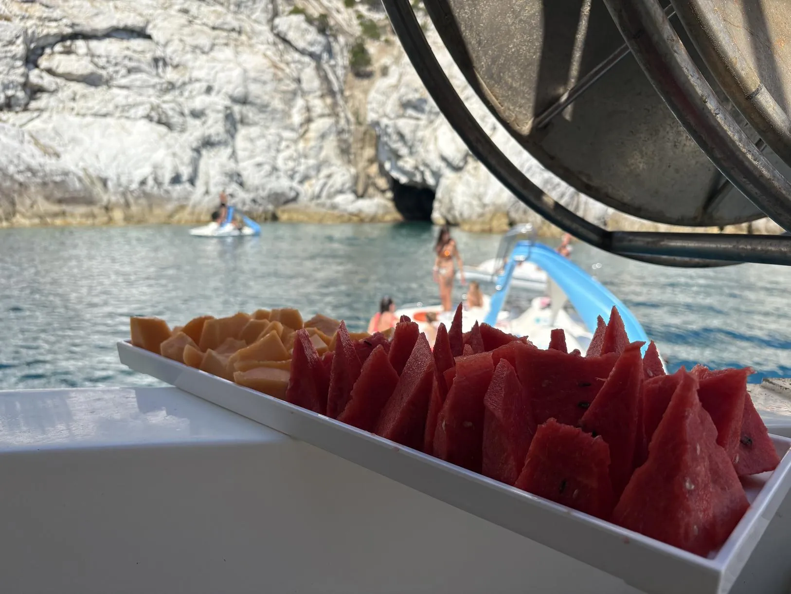You will board a fishing boat equipped with all the comforts and ample space spread over two decks. The expansive upper deck lends itself perfectly to sunbathing, or diving from the special gate, which is also excellent for a possible dolphin sighting.