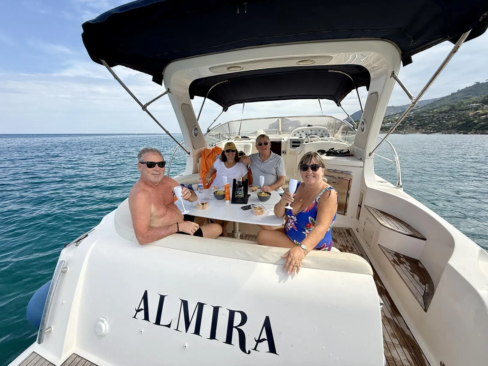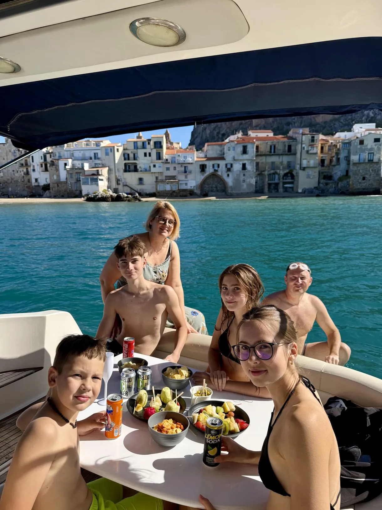 On board you will be offered an aperitif of savory snacks and fresh fruit accompanied by bottles of prosecco, beers and soft drinks.