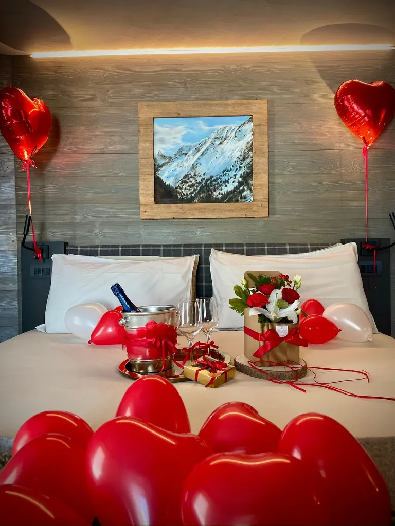 Premium and family rooms have a unique view of the surrounding Alps and also have direct access to the green relaxation area (if on the ground floor) or a balcony (if on the second floor).